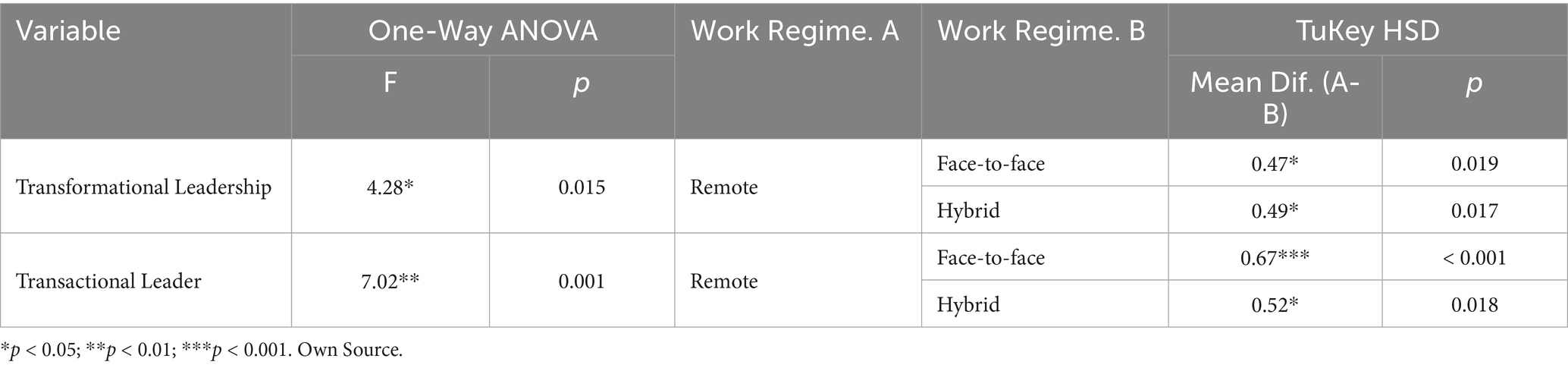 Hypothesis 4: The work regime has a significant effect on leadership.