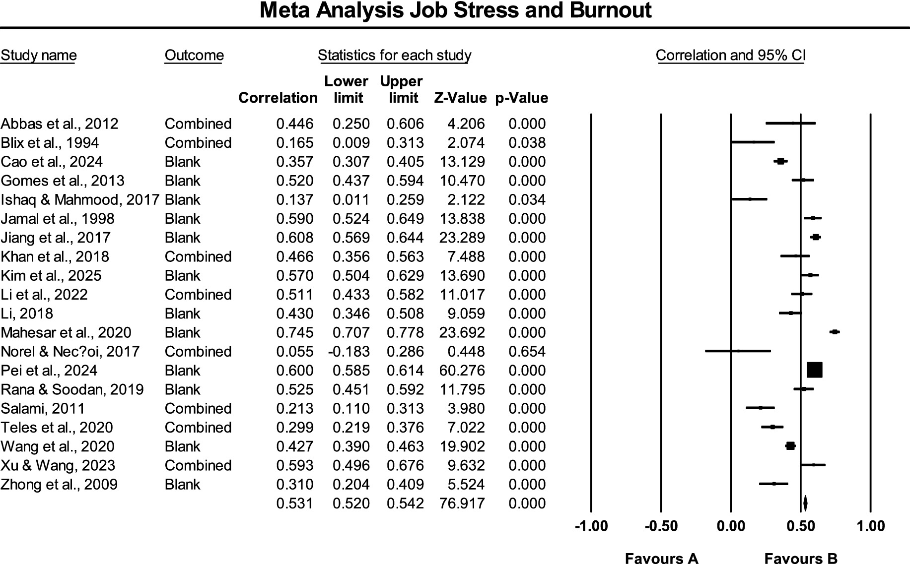 • Exposure and Outcome: Studies examining job stress, burnout, or the relationship between the two.