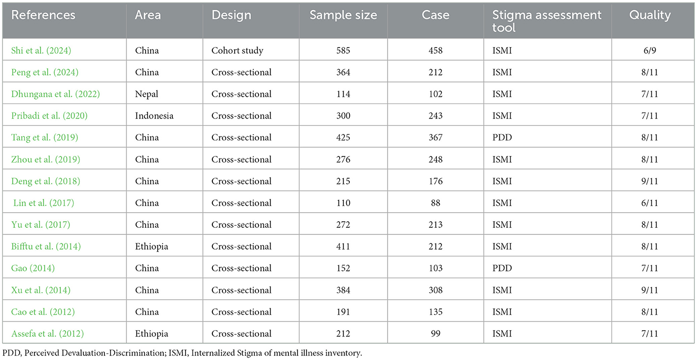 Stigma in this context manifests as a complex psychosocial phenomenon encompassing both public stigma (societal prejudice and discrimination) and self-stigma (internalization of negative stereotypes) (Tailaiti and Wang, 2022). Current evidence indicates that individuals with schizophrenia experience disproportionately elevated levels of stigma due to symptom manifestations and persistent societal prejudices (Valery and Prouteau, 2020). This dual burden triggers detrimental outcomes, including self-devaluation, social withdrawal, treatment non-adherence, and elevated suicide risk (Ociskova et al., 2023), ultimately undermining therapeutic efficacy and quality of life. Consequently, precise quantification of stigma prevalence and the development of evidence-based interventions represent critical imperatives for improving psychosocial outcomes in this population (Capar and Kavak, 2019).
