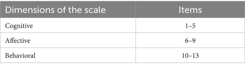 The Organizational Cynicism Scale, developed by Brandes et al. (1998), comprised 13 items on three sub-dimensions. Responses were rated on a 5-point Likert scale (1 = Strongly Disagree, 5 = Strongly Agree). Table 2 presents the details regarding the items and sub-dimensions.