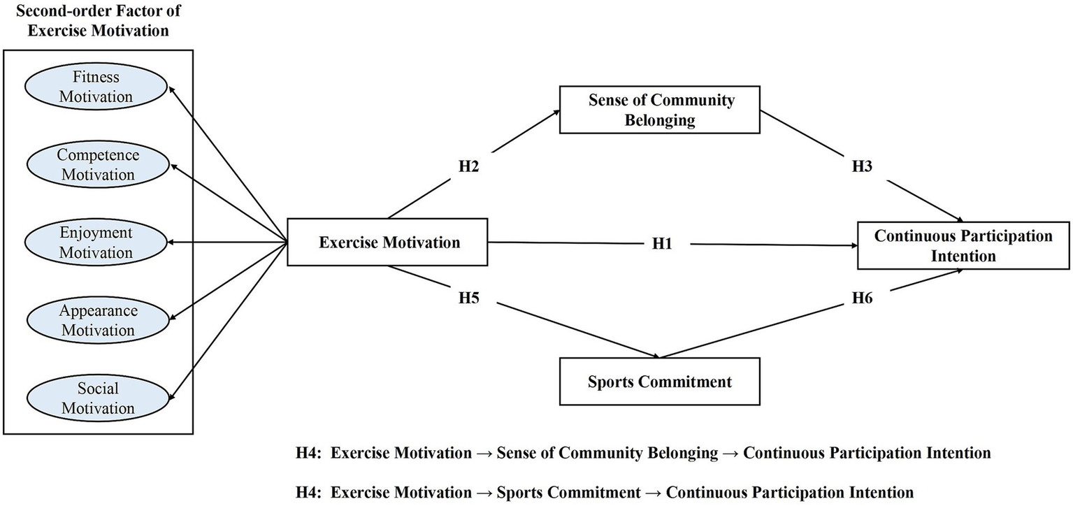 H4: Sense of community belonging mediates the relationship between exercise motivation and continuous participation intention.