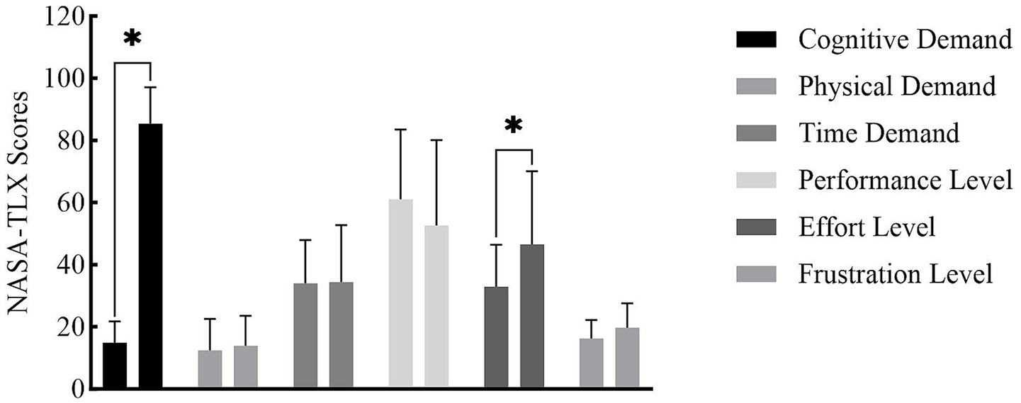 NASA-TLX scores before and after MF induction.