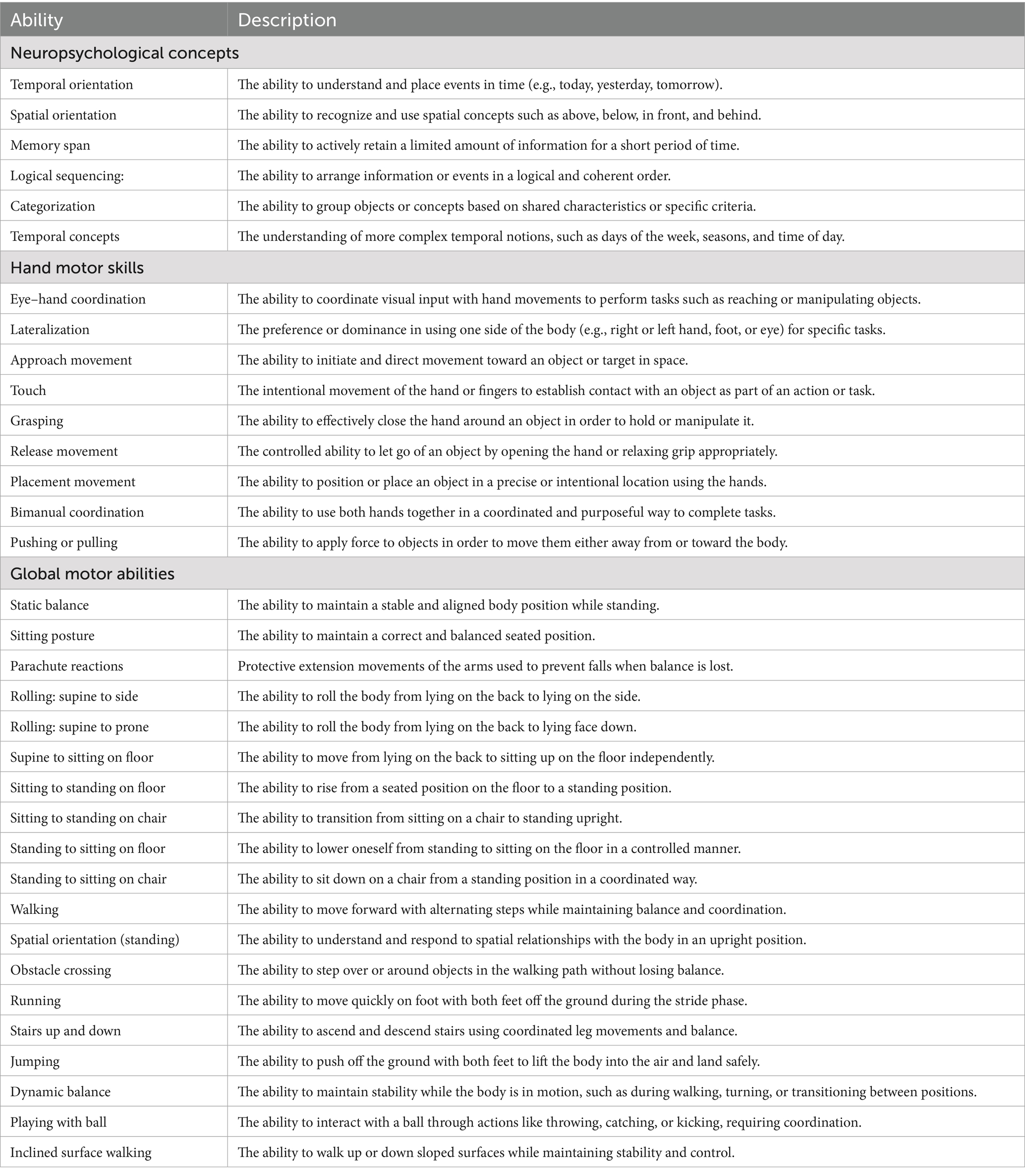 Table 2. Contents of the three subscales: neuropsychological concepts, hand motor skills and global motor abilities.