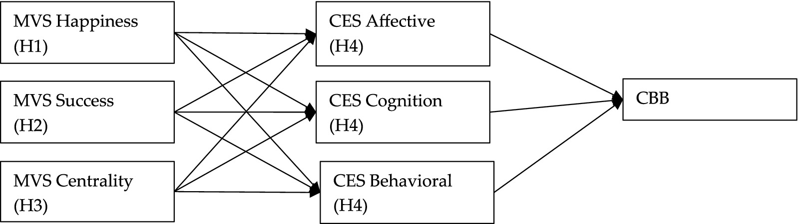 H1a: There is a significant relationship between material values happiness and the affective dimension of consumer ethnocentrism.