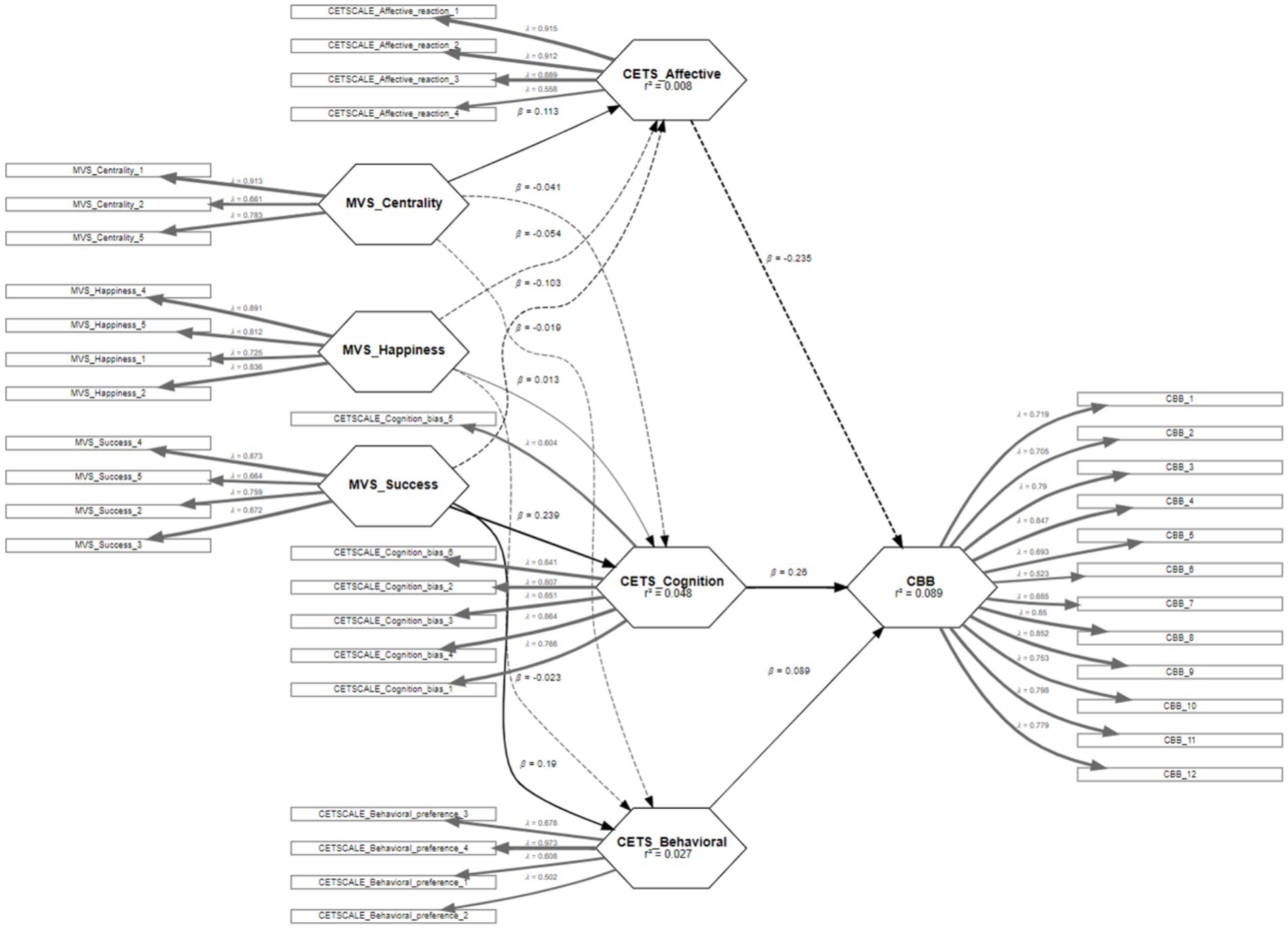 Together, these theoretical perspectives provide a multidimensional foundation for the proposed PLS-SEM model, where materialistic values are hypothesized to influence compulsive buying both directly and indirectly through consumer ethnocentrism. The model thereby integrates psychological, cultural, and behavioral determinants of excessive consumption within a unified explanatory framework.