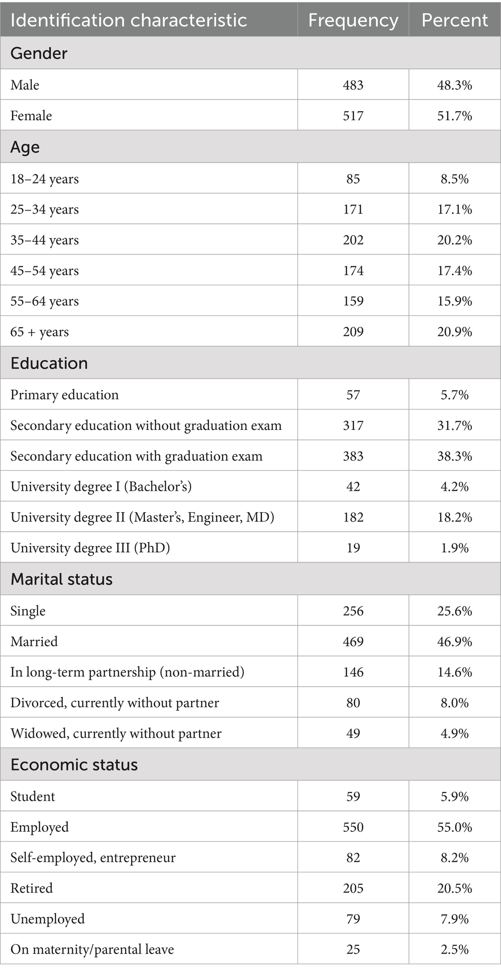 The above assumptions were processed on a sample of Slovak respondents between March 13 and March 21, 2025. The sample consisted of 1,000 respondents who represent the population of the Slovak Republic over the age of 18 in terms of gender, age, education, marital status and economic status. The data were collected in cooperation with the professional research agency FOCUS (Bratislava, Slovakia) through its online respondent panel. The representativeness of the sample was ensured through a quota sampling technique based on key demographic parameters.