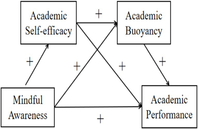 H4: Academic self-efficacy and academic buoyancy serially mediate the relationship between mindful awareness and academic performance among junior high school students.