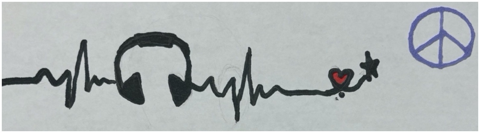 Another participant drew a car on a path to demonstrate that each person’s peace journey will be different, and we should each “choose the path that you want to take in life with no judgement or pressure…it is acceptable to take a different path in life than what you are supposed to do” (Figure 5).