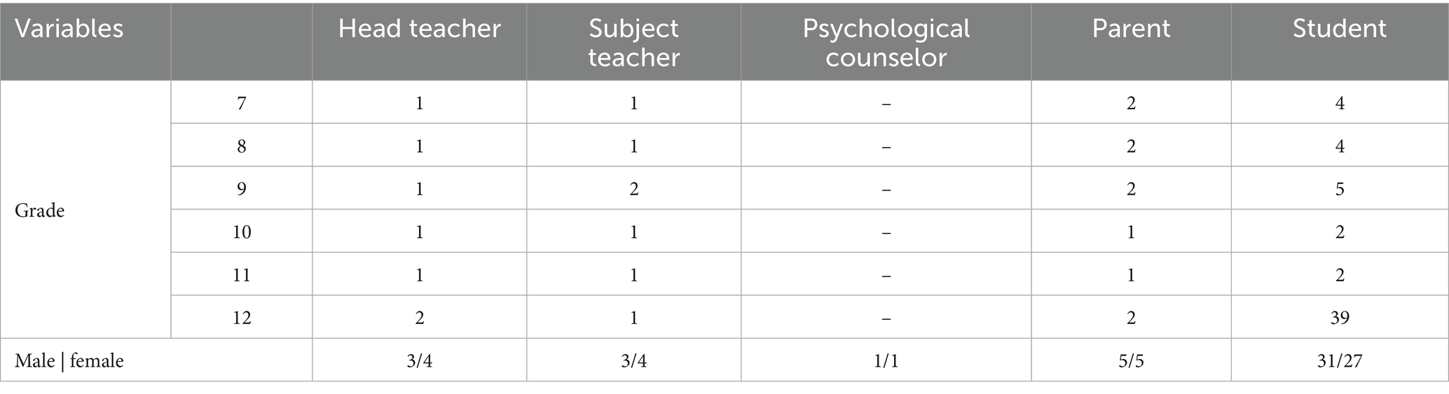 The study was approved by the Shandong Normal University’s Ethics Committee (Approval No. 2025-03-05). The research team contacted participants through referrals from their teachers and provided oral descriptions of the research objectives and content. Interviewees were thoroughly briefed on the research purpose, the voluntary nature of their participation, their right to withdraw at any time without penalty, and measures taken to ensure anonymity and confidentiality. The participants of the questionnaire survey also reviewed the informed consent form in the Wenjuanxing system and indicated their agreement to participate by checking a “consent to participate” box. All data were anonymized and stored securely in password-protected databases, with no personally identifiable information linked to the responses.