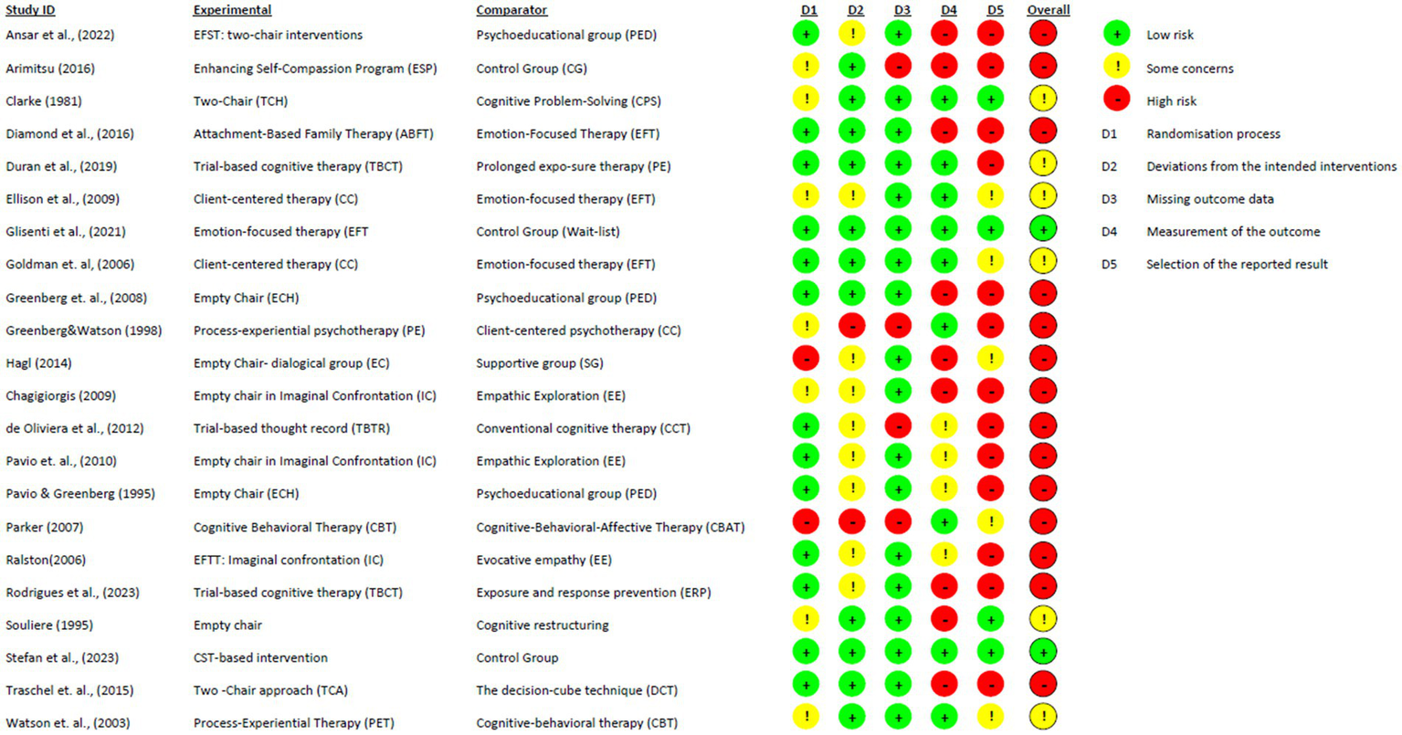 This systematic review addresses this distinction by synthesizing the evidence on the effectiveness of broader treatment protocols that explicitly include Chairwork, as assessed exclusively through randomized controlled trial (RCT) designs, thereby providing a clearer picture of its overall clinical utility across diverse populations and disorders.