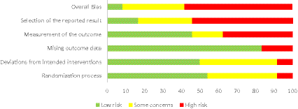 To ensure transparency and accuracy in reporting the methodology and results of our systematic review, we followed the updated criteria of the Preferred Reporting Items for Systematic Review (PRISMA; Page et al., 2021). Adherence to PRISMA guidelines minimizes bias and enhances the reproducibility of our study. Additionally, the RCTs were assessed for risk of bias using the Cochrane Risk of Bias 2.0 tool (Sterne et al., 2019), which evaluates the risk of bias across five domains: (1) randomization process, (2) deviations from intended interventions, (3) missing outcome data, (4) measurement of the outcome, and (5) selection of the reported results.
