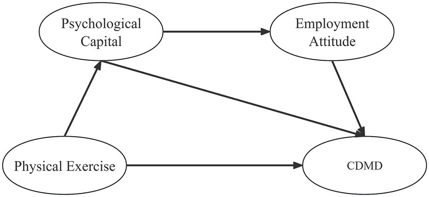 Hypothesis 3 (H3): Both psychological capital and employment attitudes have a chain mediating effect on the relationship between physical exercise and CDMD.