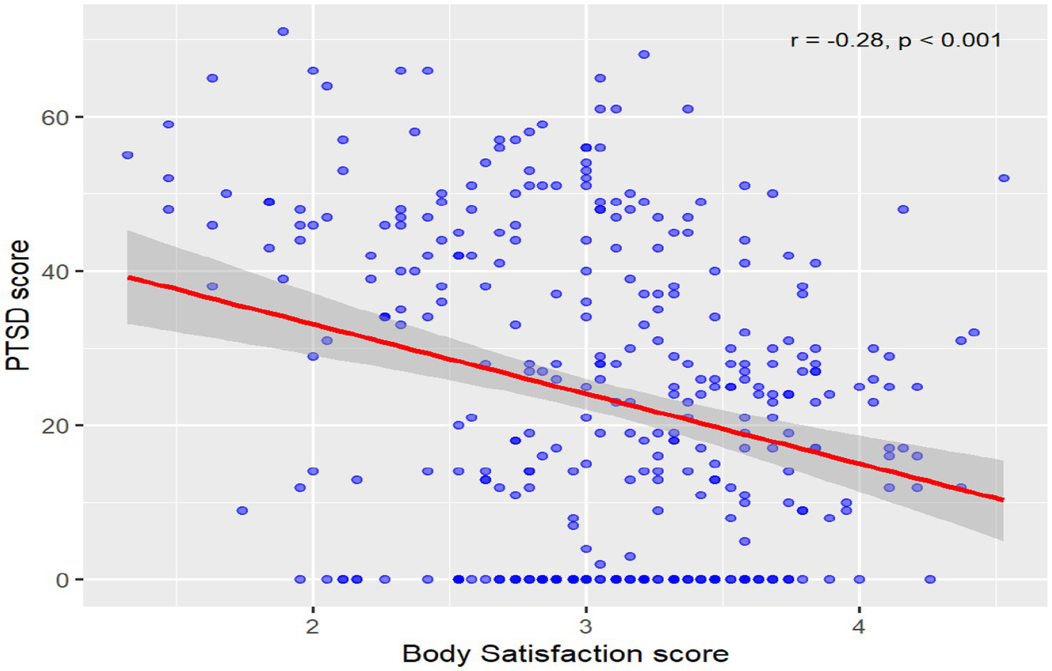 Correlation between body satisfaction and PTSD.