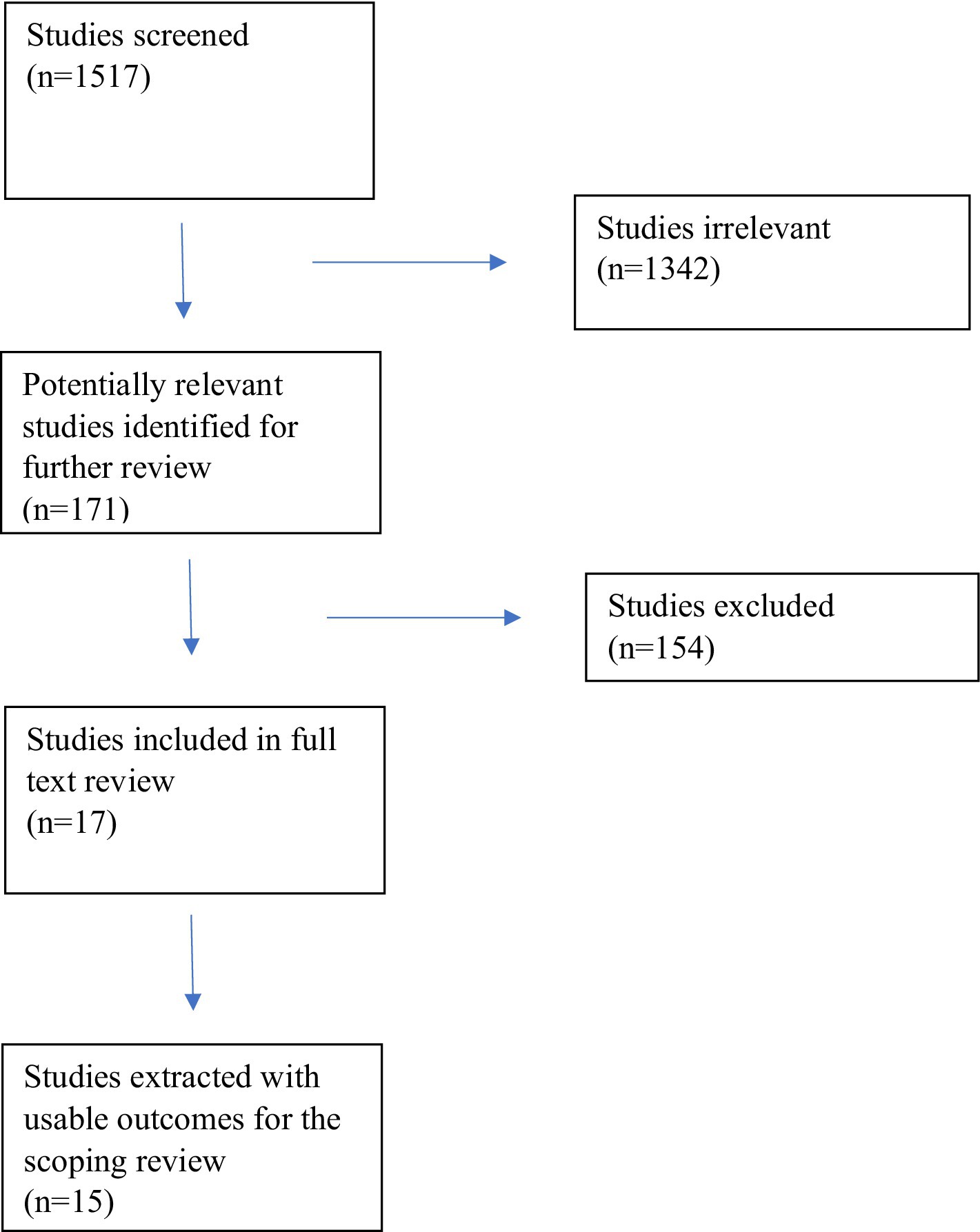 Seventeen manuscripts fit the inclusion criteria utilizing the Preferred Reporting Items for Systematic reviews and Meta-Analyses (PRISMA), and fifteen studies were extracted as including usable outcomes (Figure 2). The manuscripts were then categorized according to their foci in the following groupings: gender-focused outcomes (n = 6), race, ethnicity, and culture-related outcomes (n = 3), crossed both of the previous categories (n = 1), academic medical setting-related outcomes (n = 2), and miscellaneous (n = 3) (subjects in the 3 studies included: individuals with disabilities, employees of a multinational corporation, and LGBTQ employees in the workplace) (Table 1).