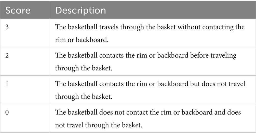 Table 2. Scoring criteria for the Basketball Jump Shooting Accuracy Test (BJSAT) (Boddington et al., 2019).