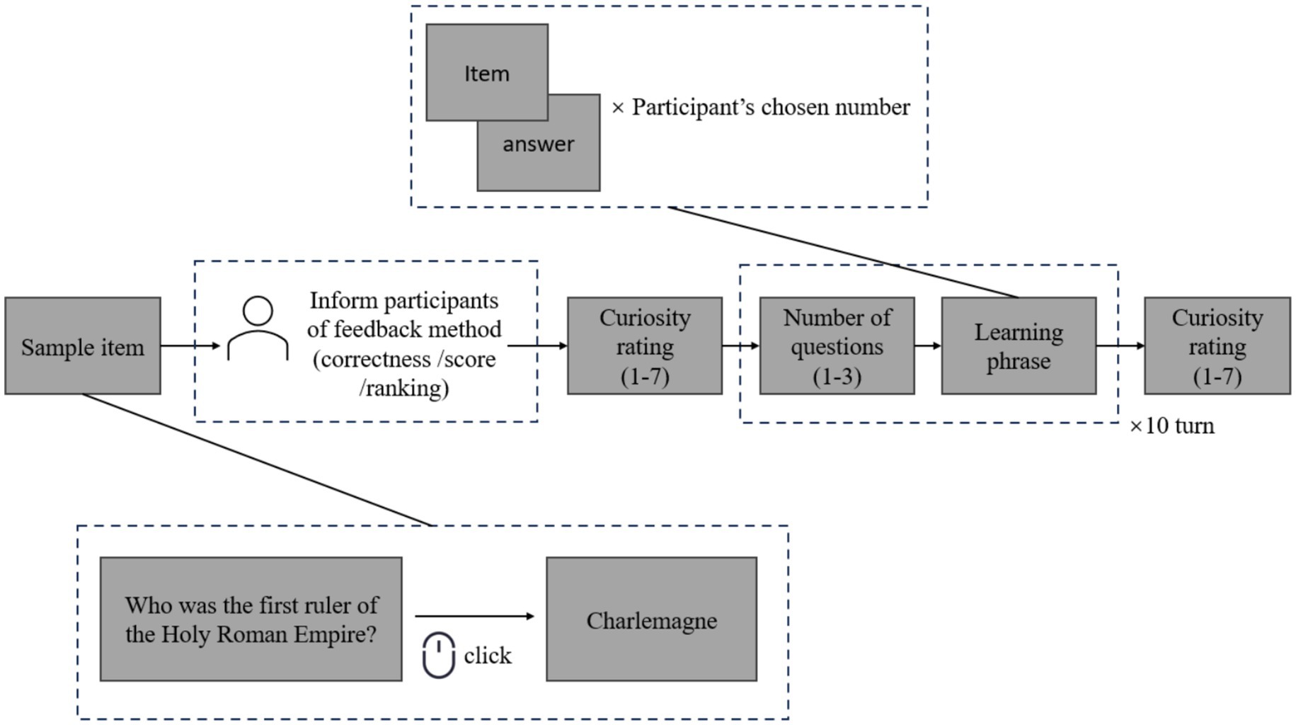 Students’ knowledge acquisition predominantly takes place within the campus environment, which is characterized by limited learning time and subsequent feedback. Examining how students’ epistemic curiosity evolves in this context can provide valuable insights for teaching improvement plans aimed at enhancing their curiosity. Accordingly, this study addresses the following research questions: (1) Does a time-limited situation enhance epistemic curiosity during students’ knowledge learning process? (2) How does epistemic curiosity change in a time-limited situation under three types of feedback: correctness, score, and ranking?