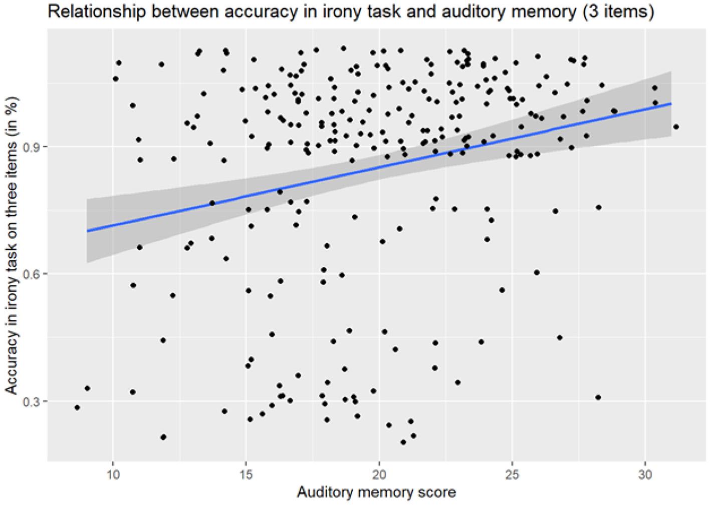 Relationship between accuracy in irony task understanding and verbal working memory.