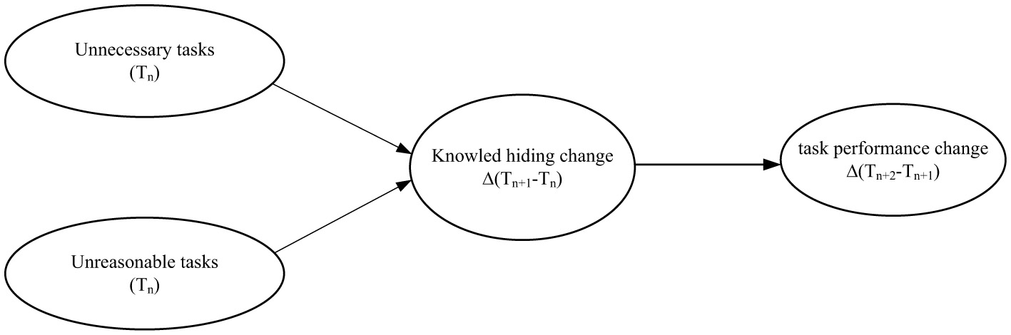 Additionally, prior studies have often conflated different types of hindrance demands, overlooking their dimension-specific effects (Webster et al., 2010). For example, unnecessary tasks may be perceived as more controllable than unreasonable tasks, leading to different coping strategies (Lazarus and Folkman, 1984). Furthermore, knowledge hiding has been identified as a key behavioral mechanism through which employees mitigate work stressors (Wang and Noe, 2010), yet its longitudinal role in response to task design flaws remains underexplored. Finally, most job design research has focused on static outcomes such as job satisfaction or burnout, rather than dynamic performance trajectories (Parker et al., 2017).