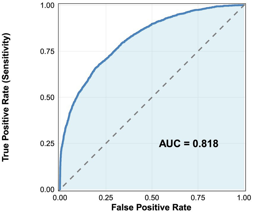 The prevalence of poor sleep quality was 26.5% (95%CI: 25.5 to 27.6%). Mental health status was the most influencing factor, and those with good mental health had better sleep quality (β = −0.853, 95%CI: −1.079 to −0.627, p < 0.001). Smartphone dependence (MPAI: β = 0.043, 95%CI: 0.038 to 0.048, p < 0.001) and a noisy dormitory environment (β = 0.627, 95%CI: 0.420 to 0.835, p < 0.001) were significantly associated with poorer sleep quality, whereas psychological resilience (CD-RISC: β = −0.017, 95%CI: −0.023 to −0.012, p < 0.001) emerged as a negatively associated factor. Other significant associations were found for smoking (β = 0.496, 95%CI: 0.276 to 0.716, p = 0.002), drinking (β = 0.594, 95%CI: 0.420 to 0.768, p < 0.001), and harmonious interpersonal relationships (β = −0.172, 95%CI: −0.251 to −0.094, p = 0.002). The XGBoost model showed good discriminative performance (AUC = 0.818, 95%CI: 0.795 to 0.841). SHAP analysis revealed nonlinear patterns, such as a U-shaped relationship between BMI and sleep quality.
