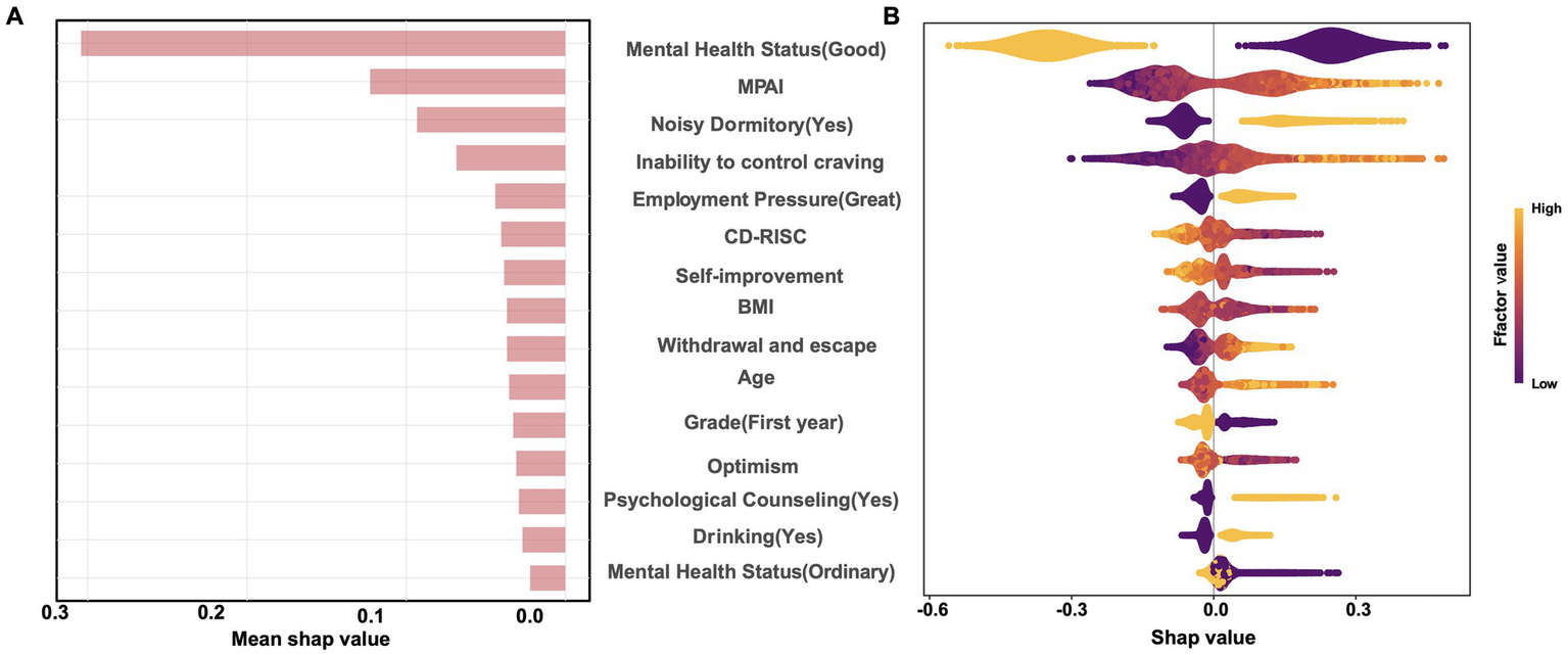 Epidemiological studies consistently report high rates of poor sleep quality in undergraduates across diverse regions, including 57.6% in a 60-country study (Babicki et al., 2023), over 60% in the U.S. (Mbous et al., 2022), and 34.2% among females in Norway (Sivertsen et al., 2019). In Africa, a systematic review of university students found a pooled prevalence of 63.31% (Nakie et al., 2024). Similarly, studies from Hong Kong (68.6%), Chongqing (49.7%), and Jilin (31.0%) highlight the issue in China (Sing and Wong, 2010; Li et al., 2020a; Wang et al., 2023). Poor sleep in students is linked to fatigue, impaired concentration, and increased risks of mental health disorders and chronic diseases over time (Seow et al., 2020), including cardiovascular disease, diabetes, and even elevated mortality risk (Del Brutto et al., 2024; Rogers et al., 2024). Identifying key influencing factors is therefore essential for effective intervention. Known contributors include academic and employment pressure (Zhao and Zhang, 2024), excessive electronic device use (Zhu et al., 2023; Tao et al., 2024), poor dietary habits, and disruptive dormitory environments (Sexton-Radek and Hartley, 2013; Faris et al., 2022).