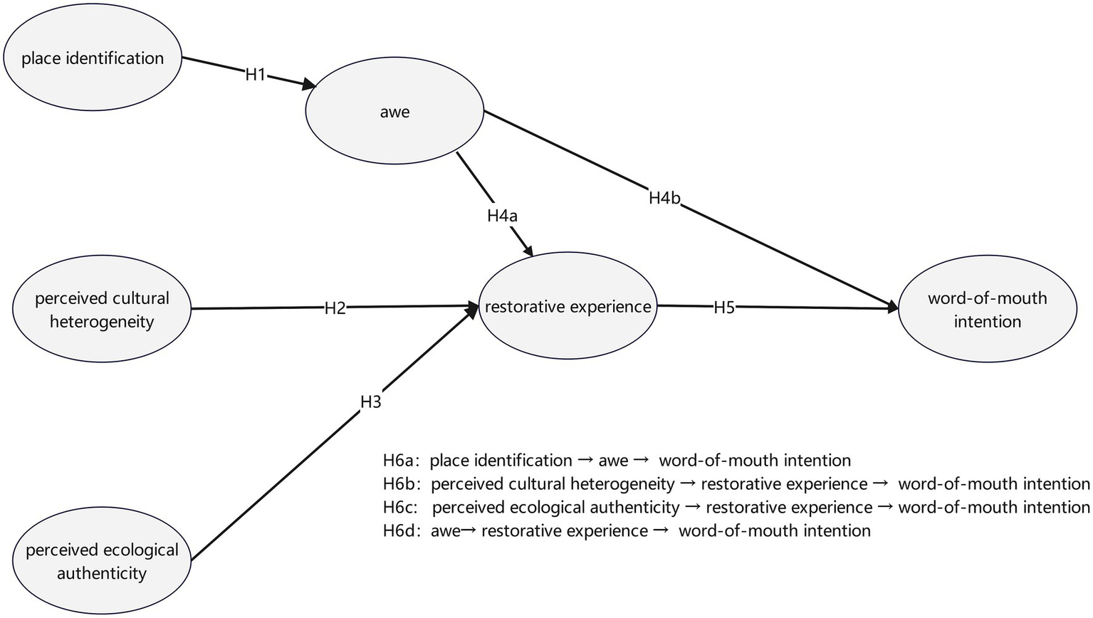 H6d: Restorative experience mediates the relationship between awe and word-of-mouth intention.