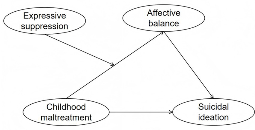 Hypothesis 1: Affective balance mediates the association between childhood maltreatment and suicidal ideation in Chinese female college students.