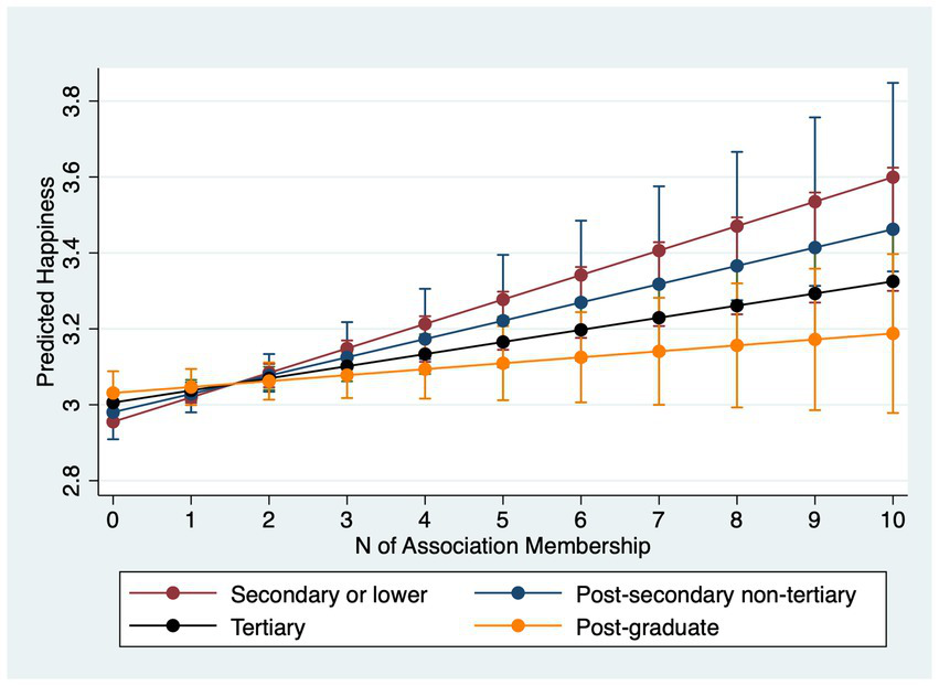 These mechanisms, including social support, meaningful activity, intrinsic motivation, and personal growth, help explain why individuals who belong to multiple associations typically report higher subjective well-being. Empirical studies consistently show that the breadth and continuity of one’s association memberships amplify these positive effects, offering repeated interpersonal contact and long-term engagement that foster durable psychological gains (Chen and Zhang, 2021; Topazian et al., 2022). This body of literature suggests that membership should produce widespread benefits, but they do not tell us whether such benefits vary across different social groups.