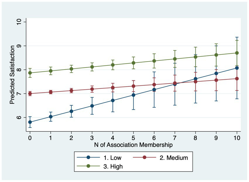 An alternative perspective, however, emphasizes diminishing marginal returns to social resources. For individuals with lower SES, who often face constrained access to stable support network and institutional recognition, association membership may provide a comparatively rare source of belonging, recognition, and interpersonal trust (Callan et al., 2017; Kluegel and Smith, 1986). Participation may therefore yield larger psychological payoffs by compensating for deficits in other forms of capital. In this sense, voluntary associations may function less as instruments of accumulation for disadvantaged groups and more as sources of emotional security and social inclusion. These competing expectations raise an important question about how psychological benefits are distributed.