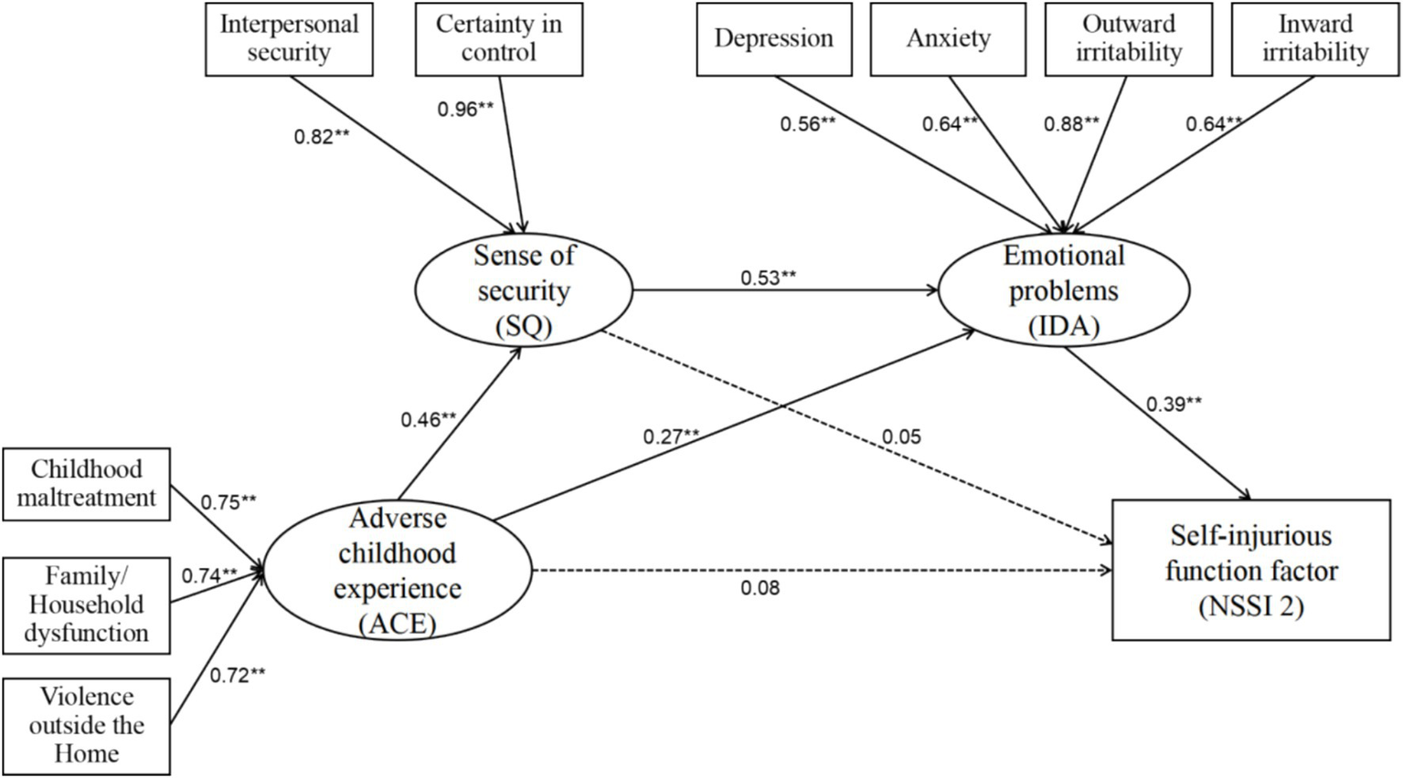 ACE, adverse childhood experience; SQ, security questionnaire; IDA, Irritability, Depression, and Anxiety Scale; NSSI, non-suicidal self-injury.