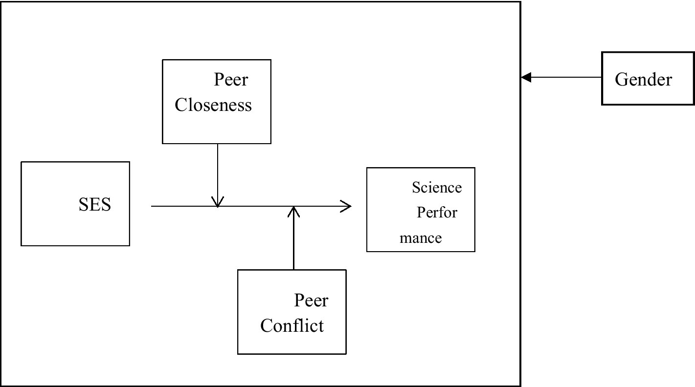 Conceptual model. The moderation effect of peer relationships (closeness and conflict) on the relationship between SES and science performance was examined while controlling for gender.