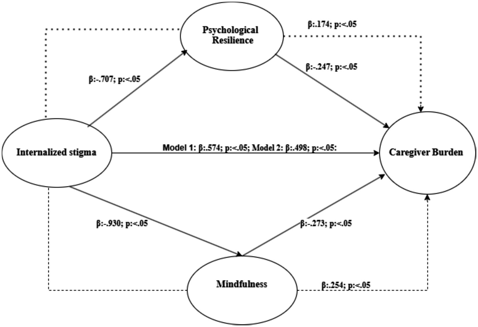 H7: Mindfulness has a mediating role in the relationship between internalized stigma and caregiver burden.