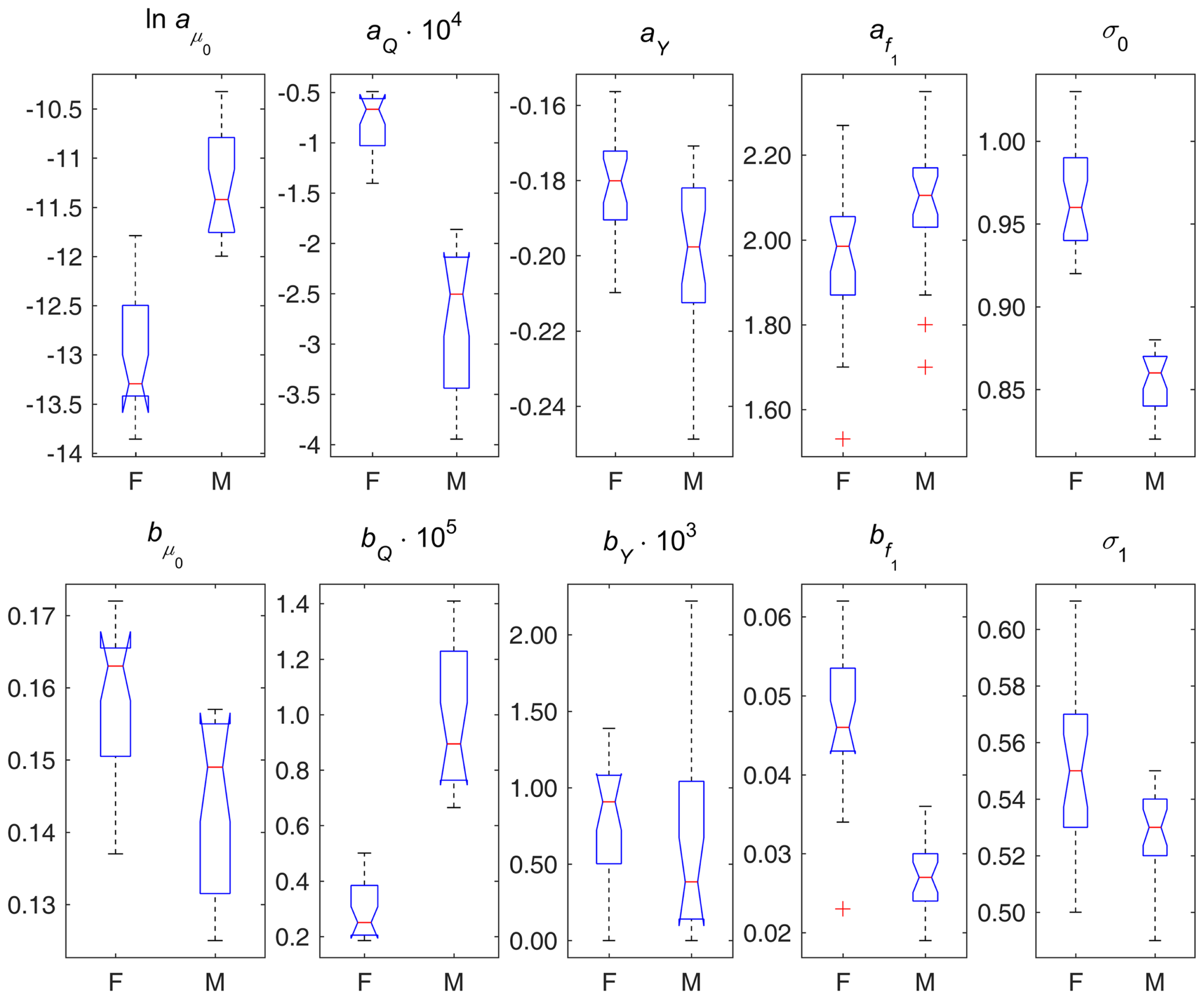 aThe estimates of some parameters are rescaled for better visibility in the table: aQ is multiplied by 104; bQ is multiplied by 105; and bY is multiplied by 103.