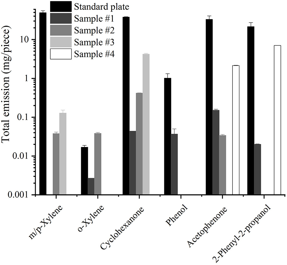 Forty-one plastic toys or decoration products were bought from local shops and kept in gas-tight bags made of aluminum composite-layer film at room concentration until usage. Four specific samples were used further for emission experiments, their properties are summarized in Table 2.