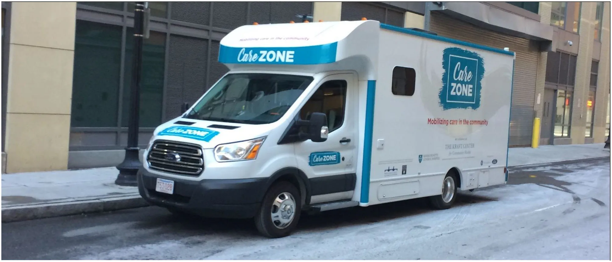 Baggett TP Smith K Nembang S Gaeta JM . The CareZONE Mobile Outreach Initiative: Pilot Evaluation, 01/16/2018 – 11/16/2018. The Kraft Center for Community Health website (2019). Available online at: http://www.kraftcommunityhealth.org/wp-content/uploads/2020/04/CareZONE-evaluation-report-01-31-2019-Final-suppressed.pdf (accessed May 28, 2020).