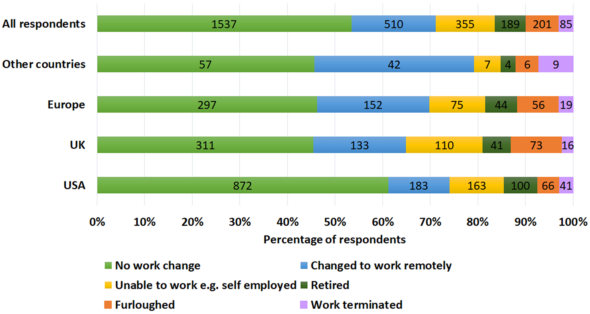 Figure 7. Comparison of changes to work patterns during the COVID-19 pandemic across different locations.