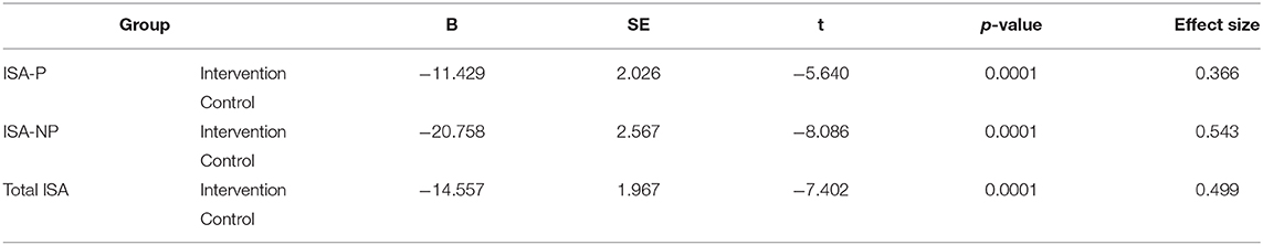 Table 3 shows that a description of the women' spouse abuse scores in the intervention and control groups. In ANCOVA, the interaction between the groups and the previous values were calculated, due to the lack of interaction (such as p = 0.174 for age of spouse and p = 0.868 for age of women), the results of ANCOVA are valid, which is presented in Table 4. The results indicated that changes in abuse scores (total ISA, ISA-P, and ISA-NP) after the intervention were significantly different among the two groups (p < 0.0001).