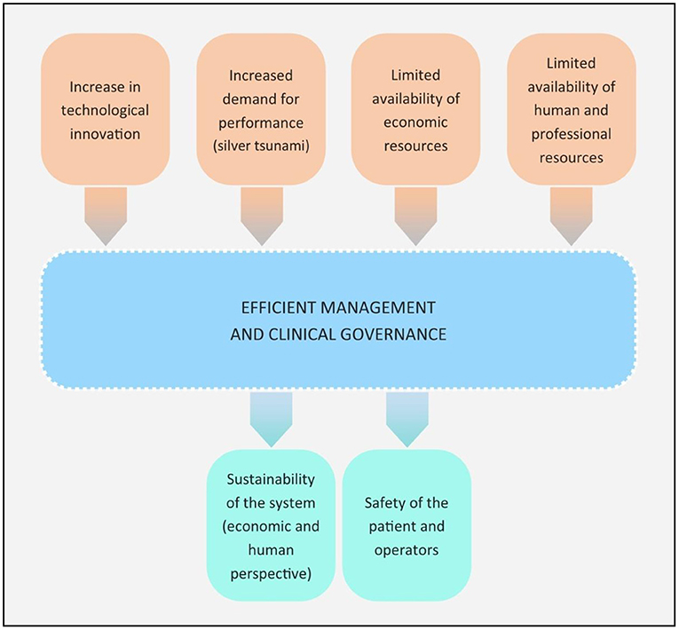 In recent decades, Western countries have noted a continual growth in demand for surgical treatment. This phenomenon, known as the “silver tsunami”, has been associated with an increase in the average age of the population, an increase in the availability of technological innovations for use in surgical pathways and an imbalance between financial and human resources with respect to the increased service requirements of a rapidly changing population (4) (Figure 1). These factors, innovative in nature and intensity, require management by governance processes.