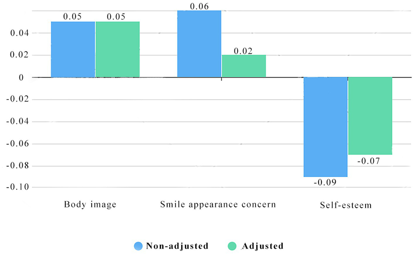 | Smile appearance concern | 0.08 (0.05, 0.11)*** | 0.02 (−0.02, 0.07) 0.3014 |