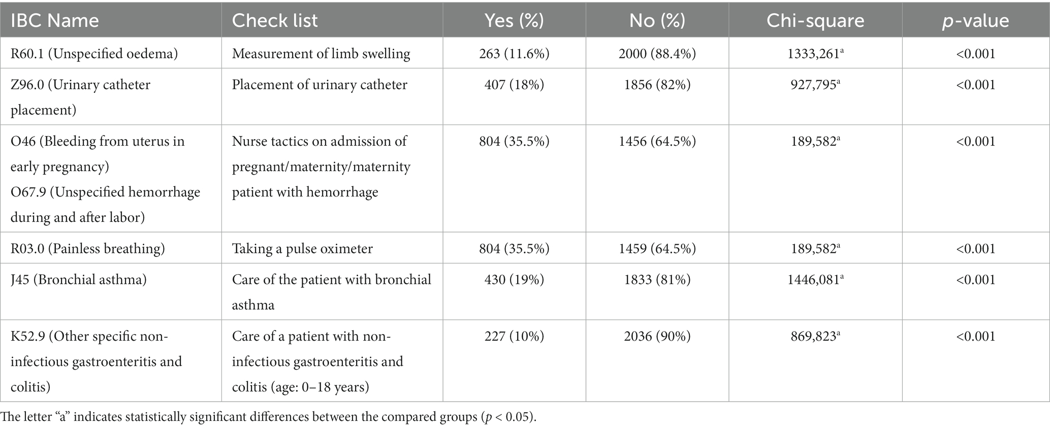 Among those who did not utilize the limb edema measurement checklist, the majority (88.4%) reported not using it. For the urinary catheter placement checklist, 82% of the respondents did not employ it, whereas 18% reported its usage. The majority (64.5%) of participants did not use the checklist for “Nurse’s tactics on admission of pregnant/maternity/hemorrhage patient,” while 35.5% reported its usage. Similarly, 64.5% of the respondents did not utilize the checklist for “Performing pulse oximetry,” and 35.5% reported its usage. Regarding the “Care of patients with bronchial asthma” checklist, 81% of the participants did not use it, while 19% reported its usage. Lastly, the majority (90%) did not use the checklist for “Care of a patient with non-infectious gastroenteritis and colitis (age: 0–18 years),” while 10% reported its usage (Table 3).