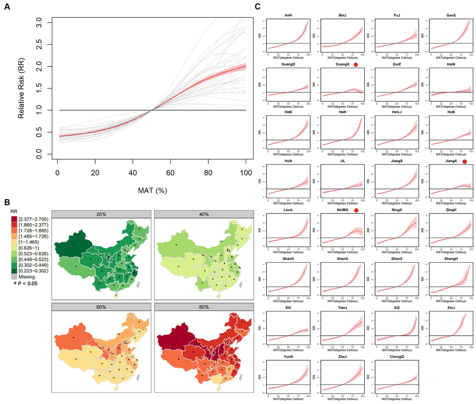 In this way, a series of spatially smoothed log-RRs of target MAT were calculated with higher accuracy and stability for 31 provinces.