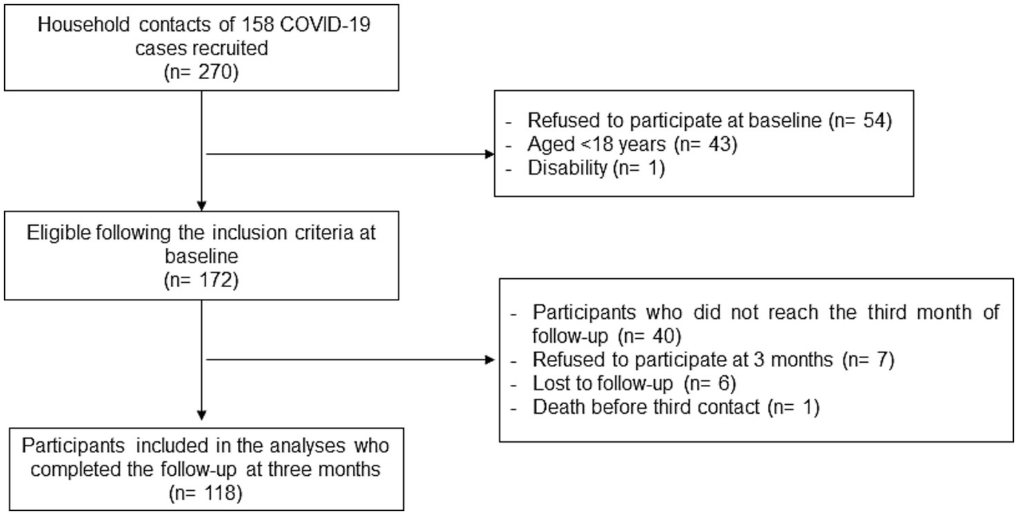 Trained personnel performed a telephone survey on the household contacts in three rounds (baseline, three and six months later). For this study, we only include information from the first two rounds (baseline and three months), to evaluate the possible changes over a short time period.