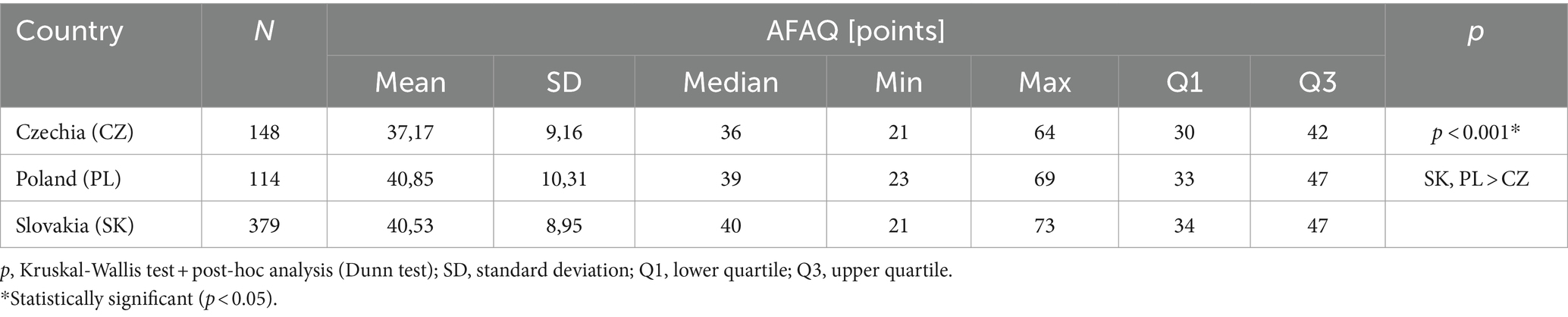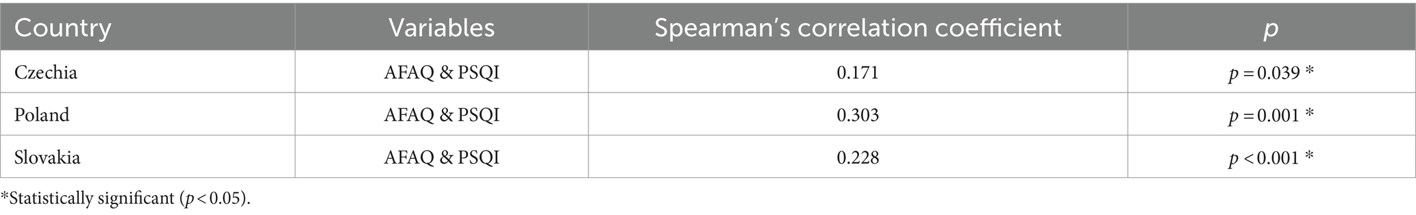 The PSQI questionnaire is employed to assess the quality of sleep of participants. Higher scores indicate a lower quality of sleep. In accordance with the key for this scale, the PSQI scores were analyzed, with 0–5 points being indicative of good sleep quality and 6–21 points being indicative of poor sleep quality. In this study we used Polish (24), Czech (25) and Slovak (26) versions of the PSQI.