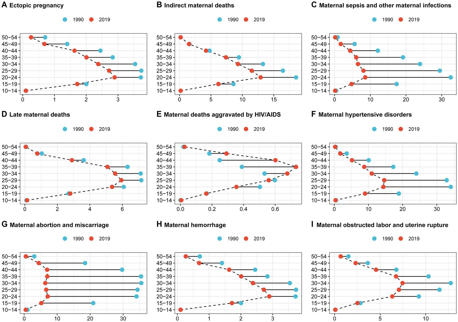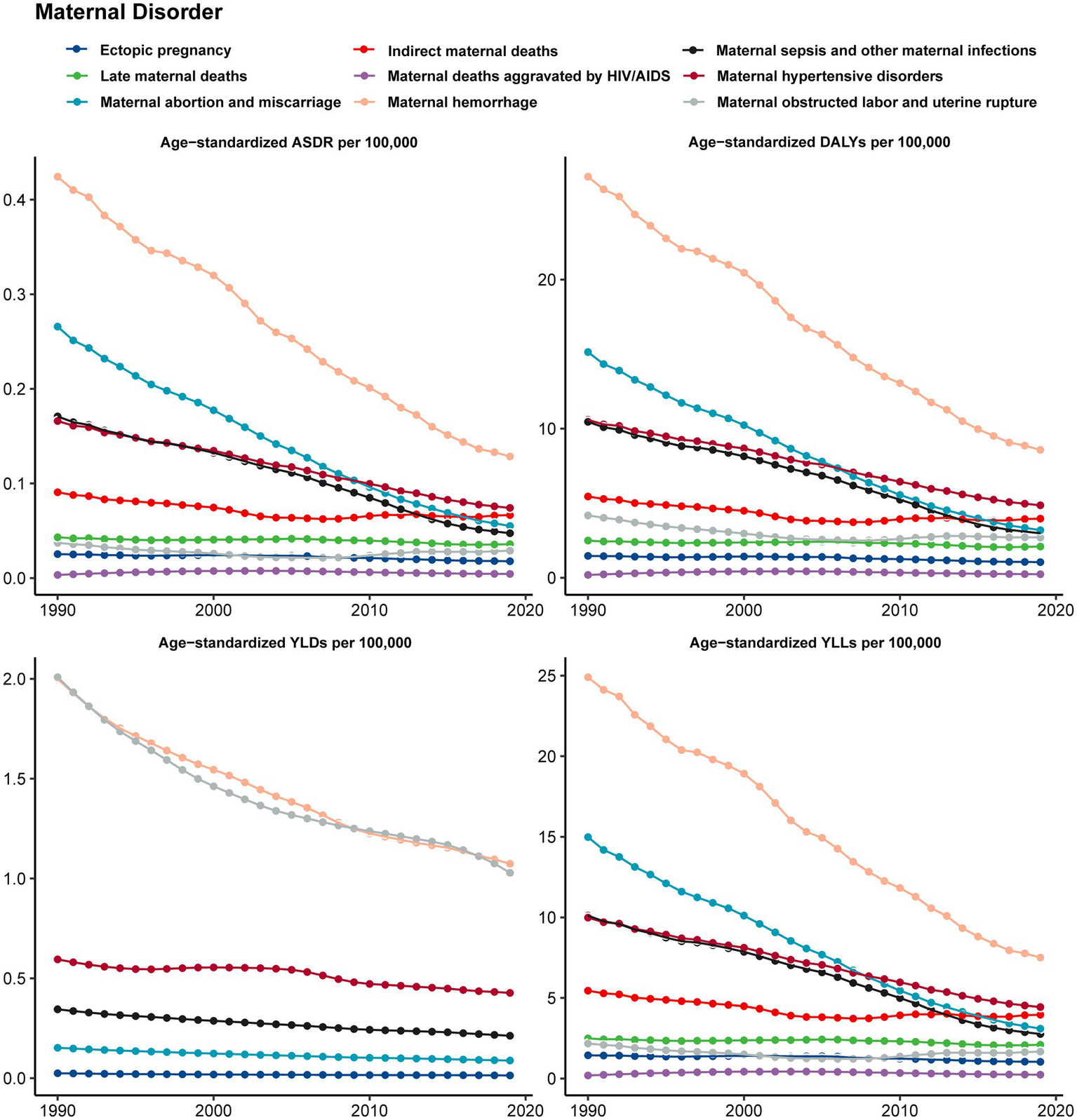 The causes of maternal disorders were classified according to the categories listed in the 2019 GBD study (15). The operational definition based on the International Classification of Diseases-10th Revision (ICD-10) are list on Supplementary Table S1.