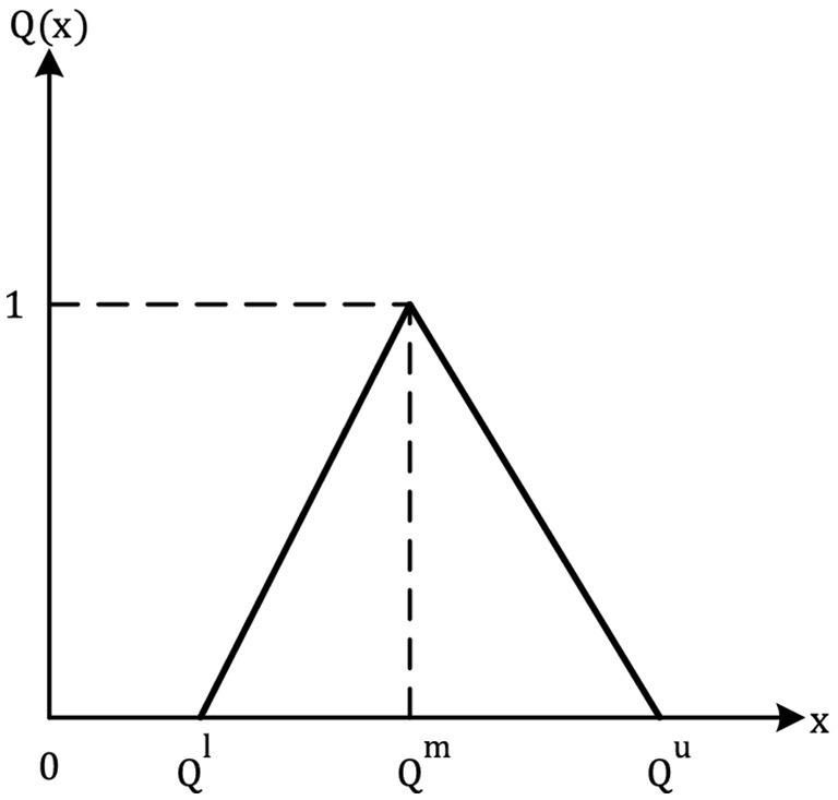 In this formula, l, m, and u are the lower, modal, and upper support values, which are all crisp (−∞ < l ≤ m ≤ u < ∞). As a triplet of letters (l, m, u), a TFN can be represented. Two TFNs are described in (65) for a basic understanding of how they work (Figure 1; Table 3).