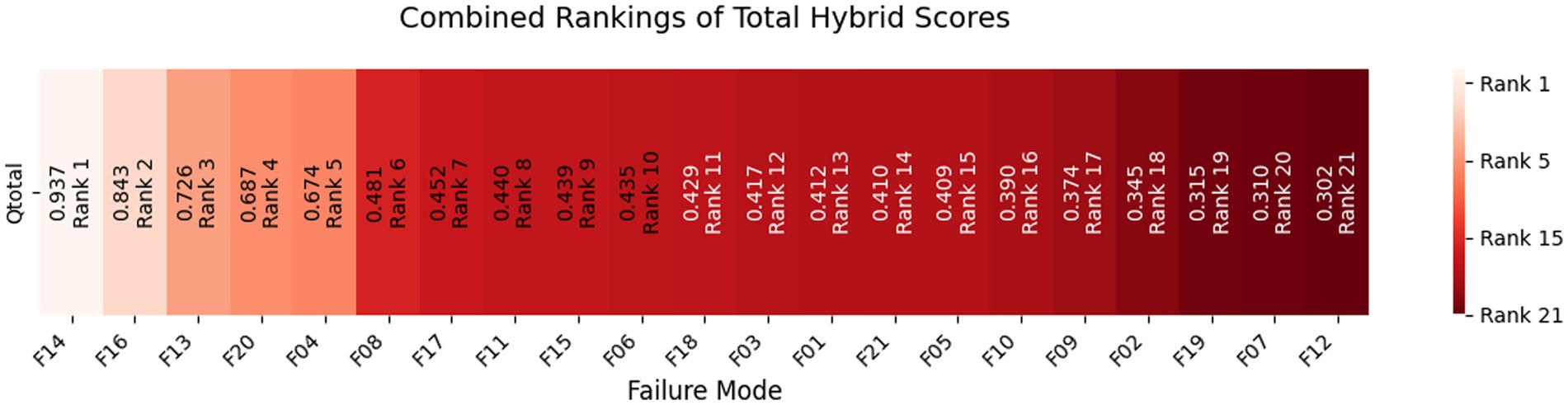 Step 3: To order the failure modes for the 𝑖-th alternative, use the utility function Qi, where 𝜆 (typically set to 0.5 for balance) weights the WSM and WPM scores. Rank the failure modes from highest to lowest K𝑖 values to determine their priority (lower middle values indicate higher risk).