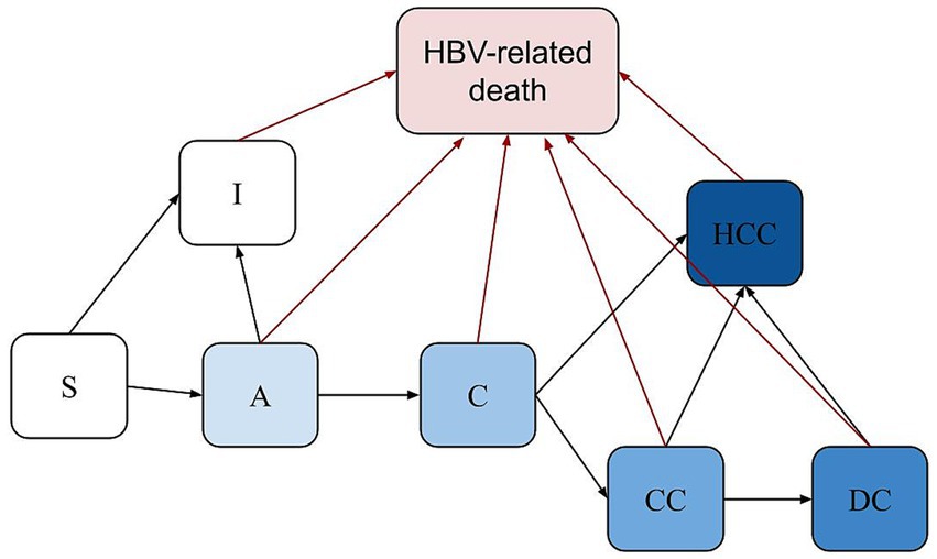 Several mathematical models have been developed and used to measure hepatitis B progression and transmission (5–16). In 2019, the Global Burden of disease (GBD) Hepatitis B Collaborators (7), conducted a comprehensive estimation of global, regional, and national prevalence of hepatitis B virus (HBV), including mortality and disability-adjusted life-years due to HBV. In 2016, Edmunds et al. (5) using a static model assessed the impact of hepatitis B vaccination on severe HBV-related disease, specifically liver cancer and cirrhosis. Their detailed estimates were based on the data from China, Gambia and South Korea (5, 6). Using a Markov model, Lu et al. (13) estimated the long-term cost-effectiveness of universal newborn hepatitis B vaccination in China, a country with high endemicity of hepatitis B. Chen et al. (8) provided a comprehensive economic evaluation of infant HBV vaccination combined with Hepatitis B immunoglobulin (HBIG) in China. In 2016, Razavi et al. (16) used a dynamic HBV transmission and progression model to estimate the prevalence of HBV for the countries and the region including the impact of prophylaxis and treatment on disease burden. In 2005, Goldstein et al. (11) developed a model to estimate the impact of global HBV vaccination in reducing HBV-related morbidity and mortality.