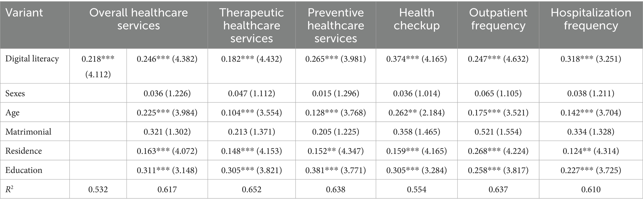 Table 8. Estimated results of the impact of digital literacy on the consumption of healthcare services by the older adults.