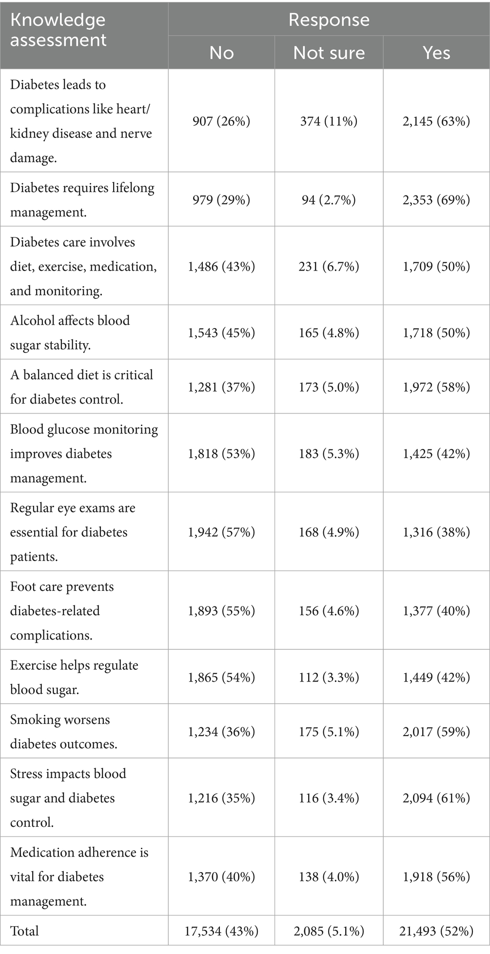 Table 2. Knowledge assessment on gestational diabetes, its complications, management strategies, and risk factors.