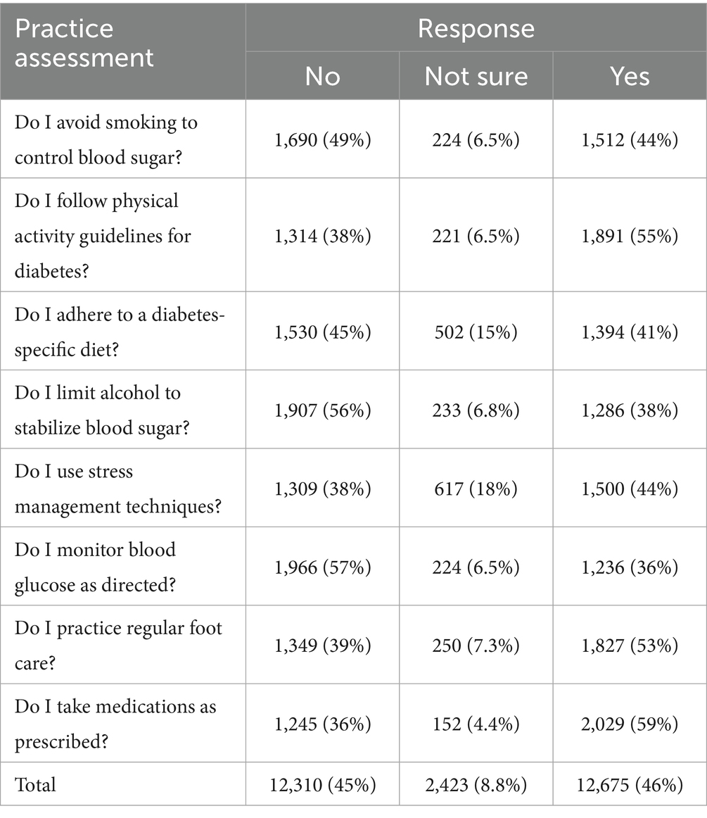 Table 3. Practice assessment evaluating self-care behaviors such as diet, exercise, medication adherence, and glucose monitoring.