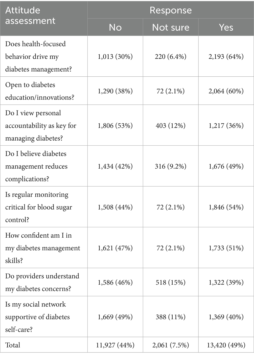 Table 4. Attitude assessment towards gestational diabetes management, including confidence, social support, and healthcare perceptions.